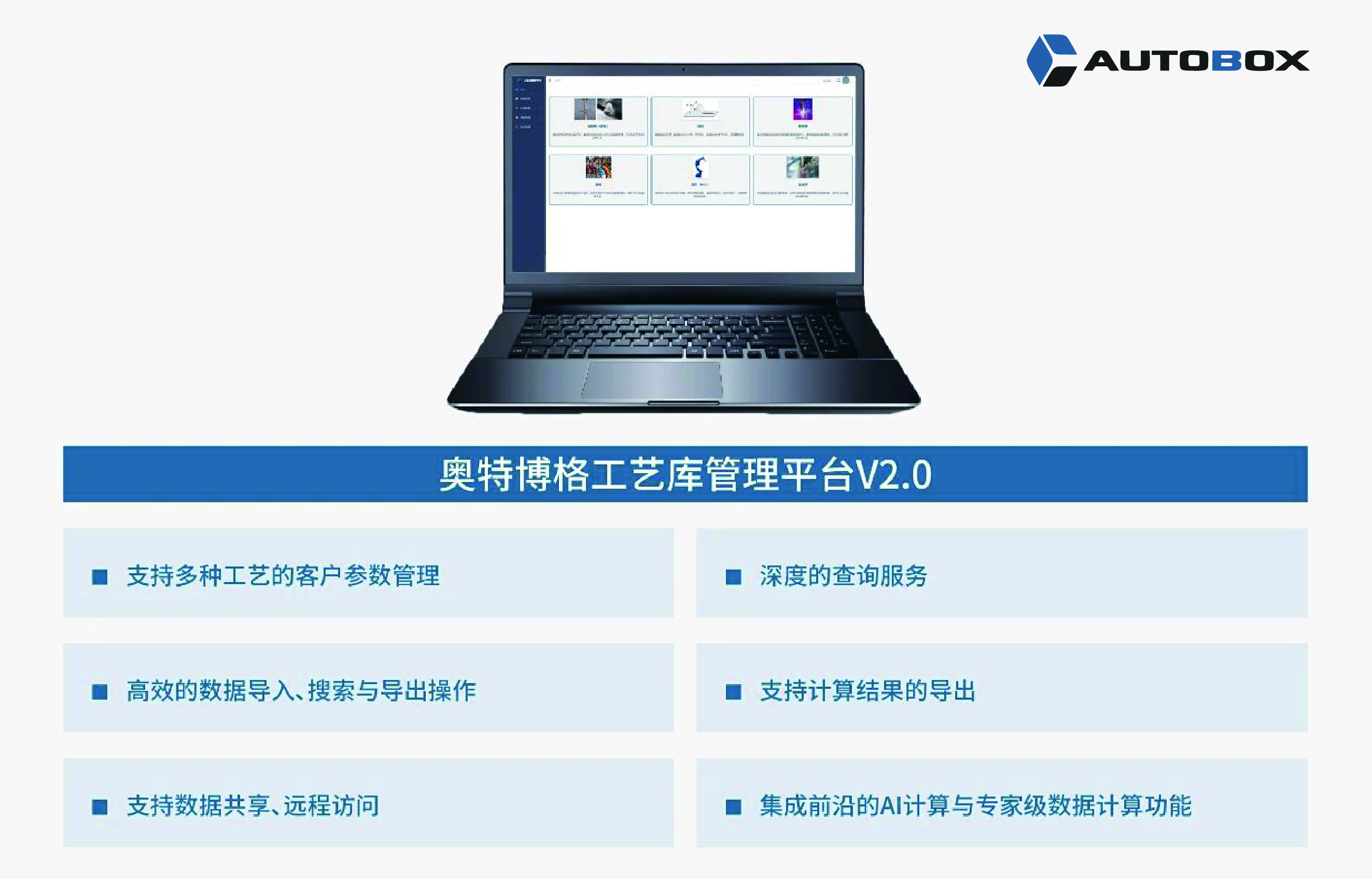 該平臺(tái)具備參數(shù)統(tǒng)一管理,實(shí)時(shí)高效協(xié)同,精準(zhǔn)數(shù)據(jù)輔助決策等多種強(qiáng)大功能,為奧特博格工藝管理帶來(lái)了突破性的解決方案:憑借集成化、智能化的特性,平臺(tái)收錄了弧焊、涂膠、激光焊、電阻焊、鉚接、螺柱焊等各工藝的客戶參數(shù),實(shí)現(xiàn)這些數(shù)據(jù)的集中存儲(chǔ)、高效處理與靈活應(yīng)用,提高了管理效率和查閱便利性。該平臺(tái)成功打破地域壁壘,支持工程師們實(shí)時(shí)進(jìn)行數(shù)據(jù)的導(dǎo)入、搜索與導(dǎo)出。其靈活的遠(yuǎn)程協(xié)作,不僅促進(jìn)了數(shù)據(jù)的流通與共享,還確保了高效溝通和即時(shí)反饋,為項(xiàng)目的穩(wěn)步推進(jìn)注入了強(qiáng)勁動(dòng)力。依托前沿的AI計(jì)算技術(shù)與專家級(jí)數(shù)據(jù)算法,該平臺(tái)能夠提供深度的計(jì)算查詢,并支持結(jié)果的實(shí)時(shí)導(dǎo)出,為工程師的工藝決策與理論參考提供了強(qiáng)有力的數(shù)據(jù)支撐與科學(xué)依據(jù)。